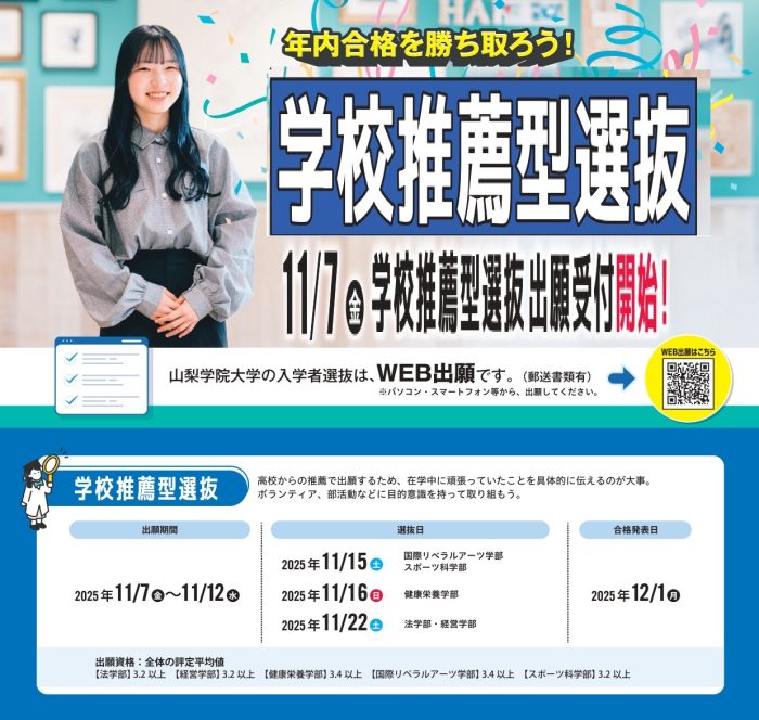 【2026年度】学校推薦型選抜 出願開始(11/7~11/12)