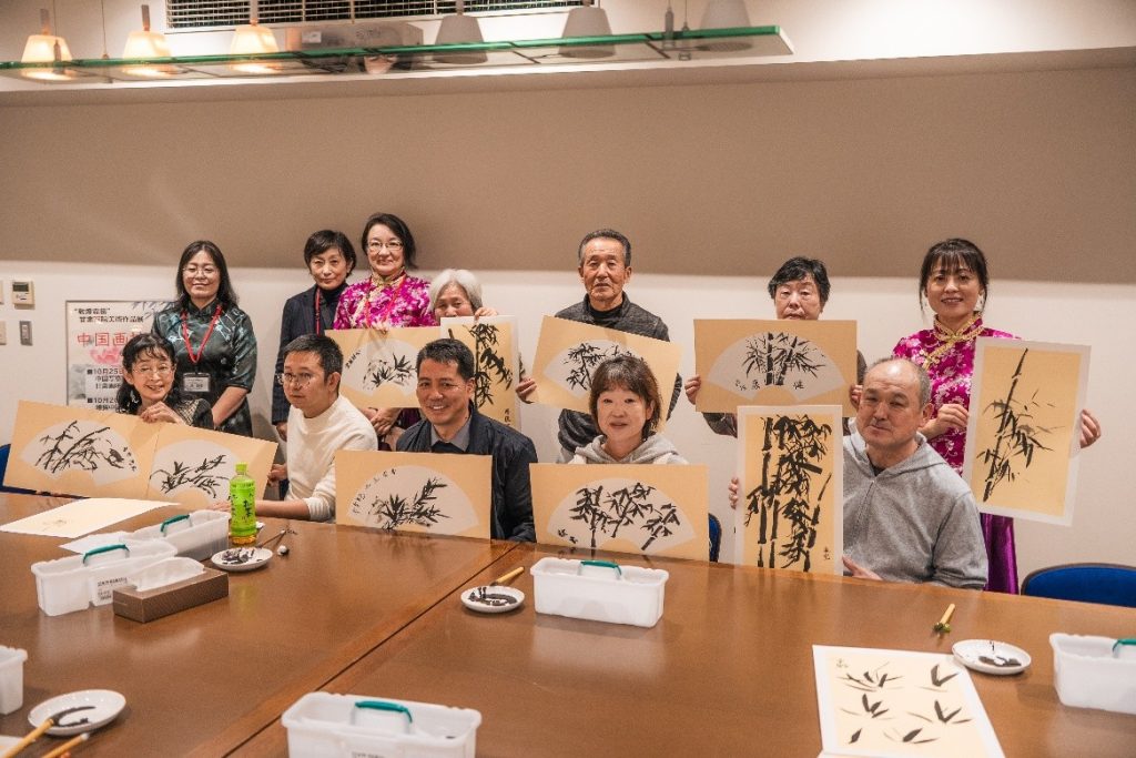 さらに同日午後には郭院長による水墨画の体験講座も開講され、多くの参加者が筆をとり、水墨や線描などの中国画技法を体験しました。墨竹や花の描き方を丁寧に教わりながら、自ら作品を仕上げていく過程で、中国文化の奥深さを直に感じる貴重な体験となりました。