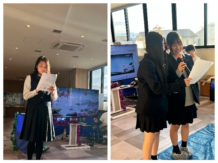 イベントのプログラムのひとつとして、日本人の生徒と中国人の生徒による朗読大会が行われました。この朗読大会は、日本人生徒が中国の唐詩を、中国留学生が日本の物語を朗読しました。日本と中国お互いの言語に挑戦する姿が印象的で、会場からは温かい拍手が送られました。