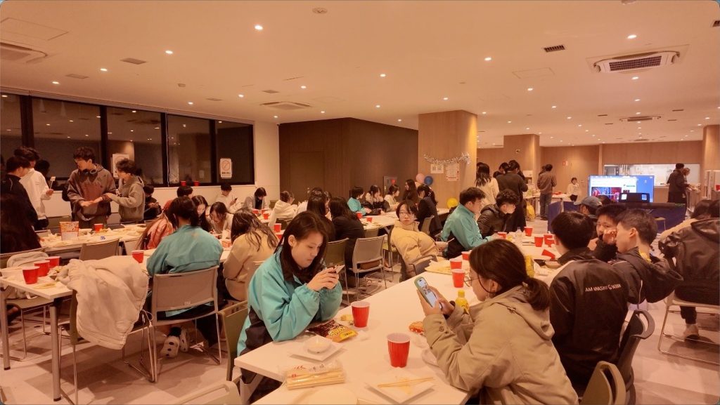 食事や歓談の時間には、参加者同士が積極的に交流し、学校生活や趣味の話などで会話が弾みました。お互いの言葉を教え合う場面も多く見られ、笑顔あふれる国際交流の時間となりました。