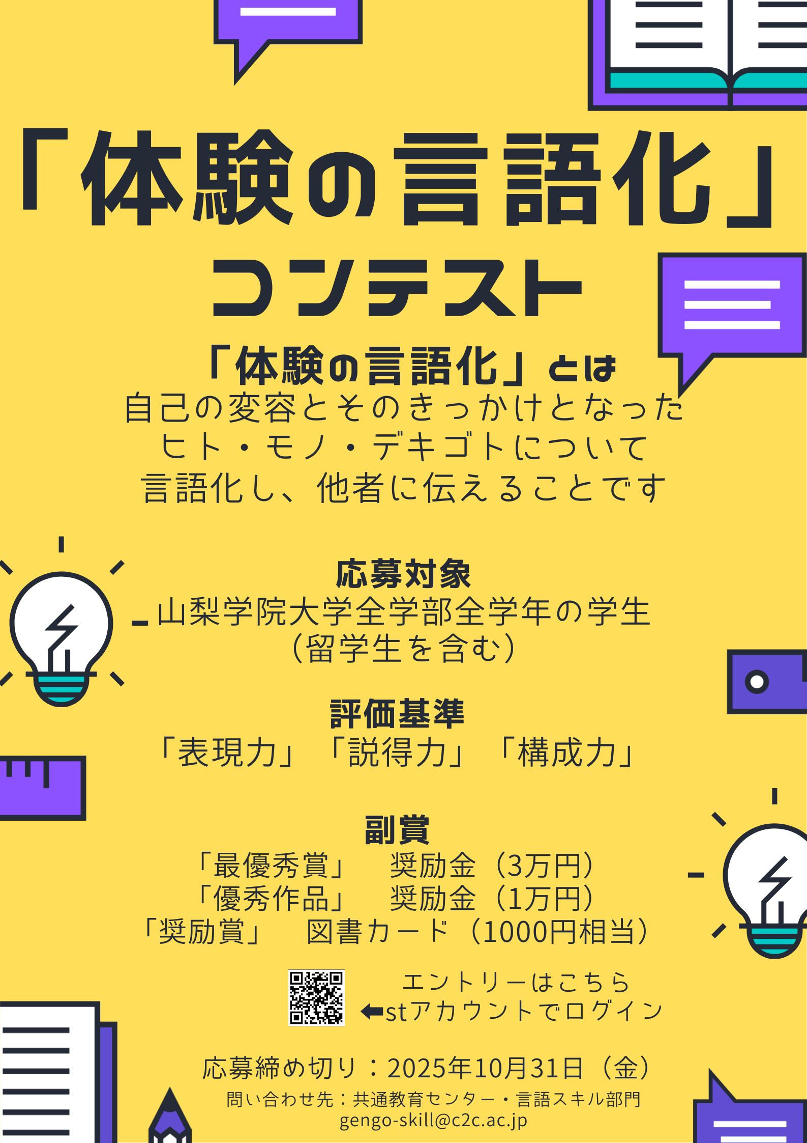 ◯コンテストの目的:自らの体験を言語化し、他者に伝える力を育むことを目的とする。また、言語化することで、自己の成長を可視化できる。