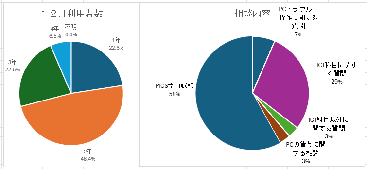 12月のICTサポートデスクの利用状況です。12月は31名の学生が利用しました。