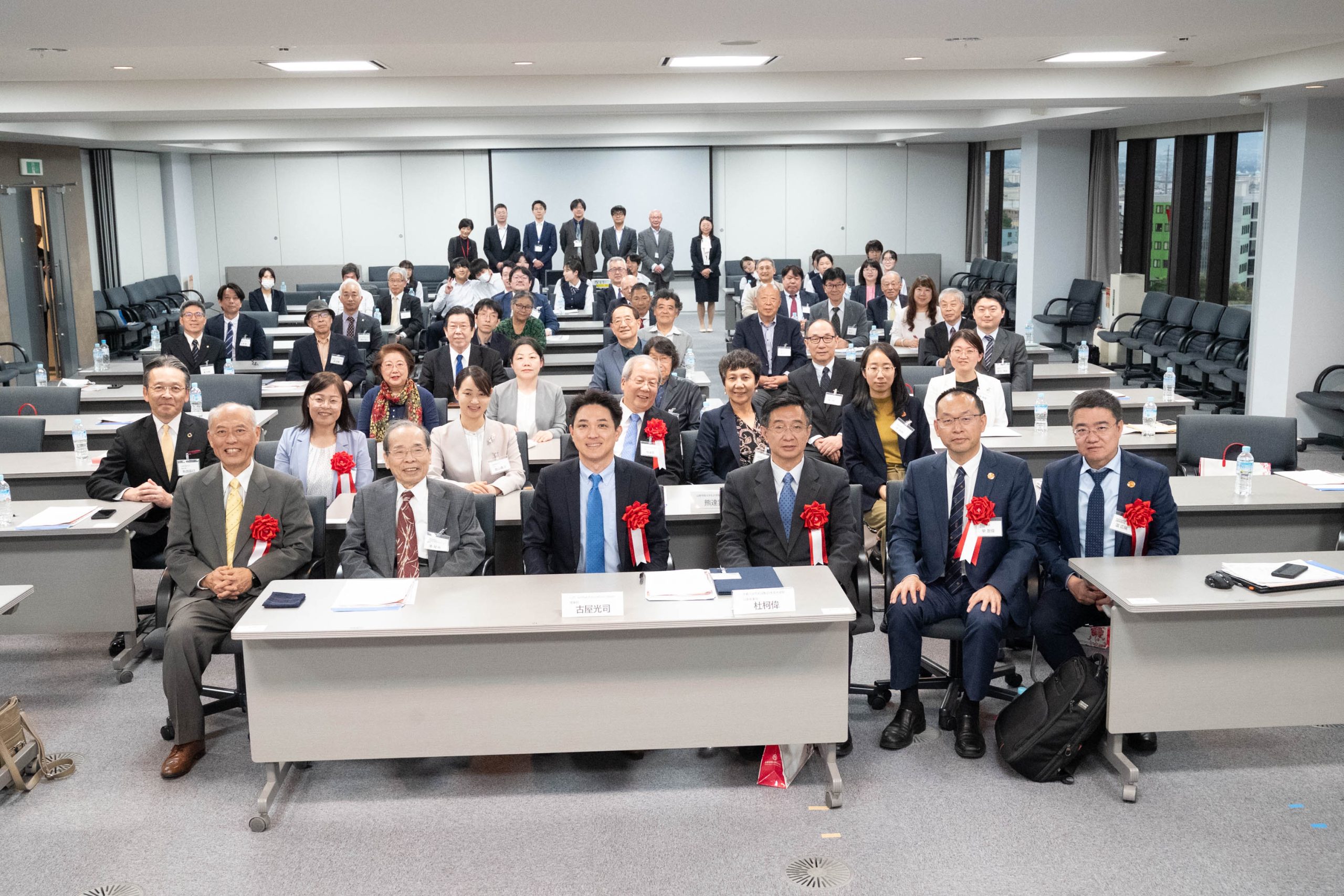 式典にはC2C Global Education Japanの古屋光司理事長(兼山梨学院大学孔子学院理事長)、山梨学院大学の青山貴子学長、提携校である西安交通大学の単智偉副学長(兼山梨学院大学孔子学院副理事長)、中国駐日本大使館教育処の杜柯偉公使参事官をはじめ、山梨学院大及び孔子学院の教職員、学生ら約80名が参加しました。
