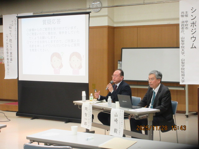 11月28日(金)に甲府市が主催し、山梨学院大学、山梨学院短期大学、消費者庁の共催で、甲府市民と食品事業者を対象に令和7年度甲府市食品リスクコミュニケーション事業シンポジウムを開催しました。