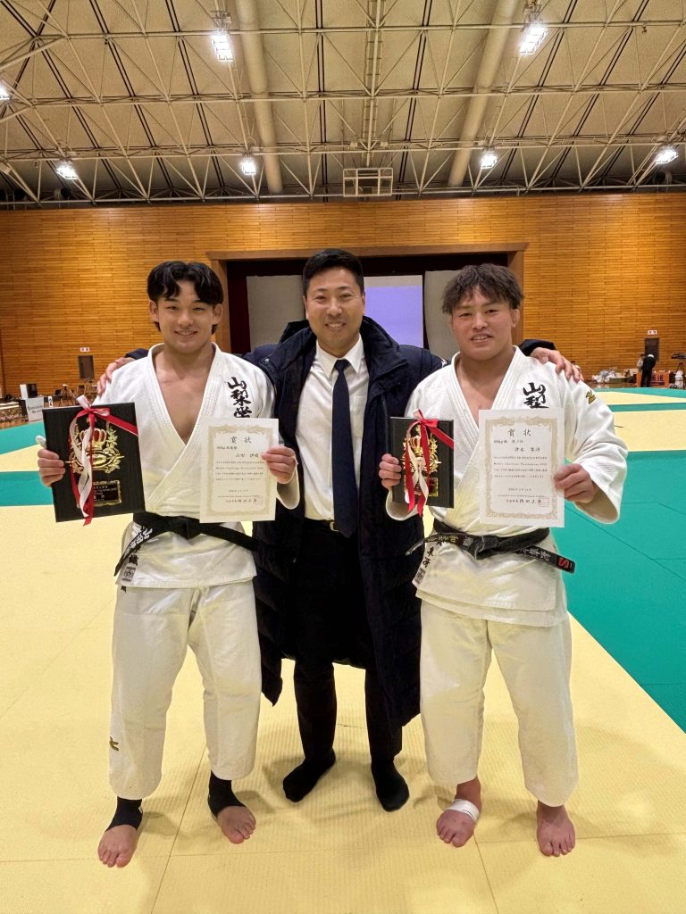 4名の選手が表彰台へ上り、その中で男子90kg級に出場した山田伊織選手が見事優勝いたしました。