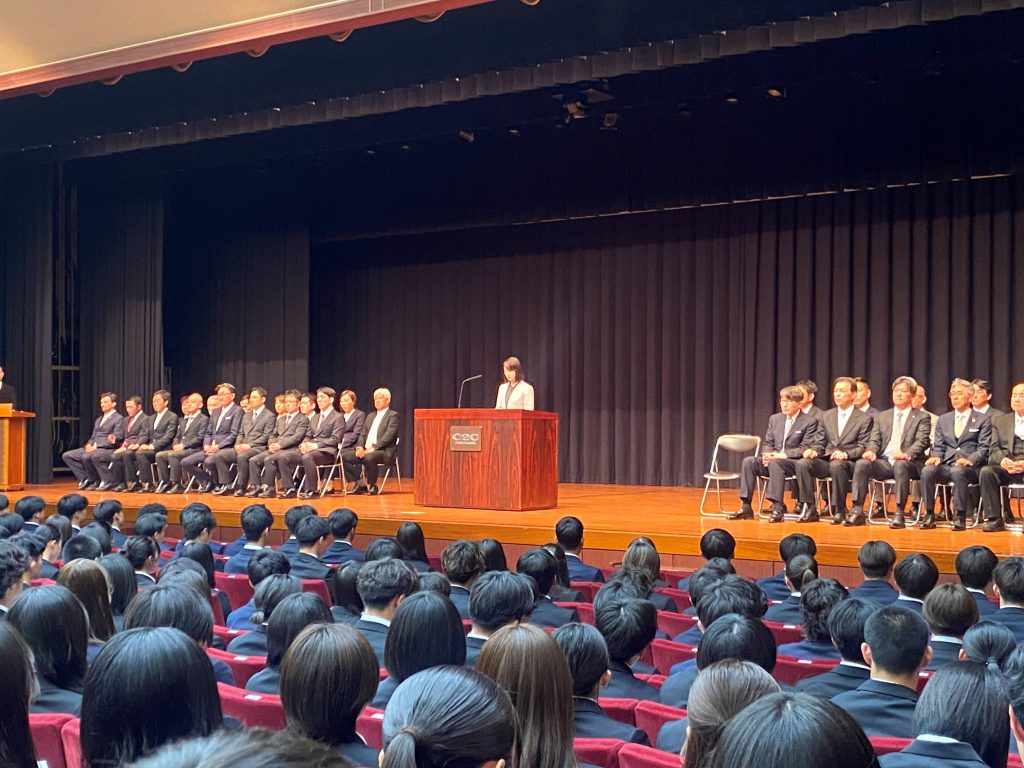 本日の入学式において、私たちは青山貴子学長より大学入学の許可をいただきました。 今、夢と覚悟を胸に、大学生活という新たなスタートラインに立っています。