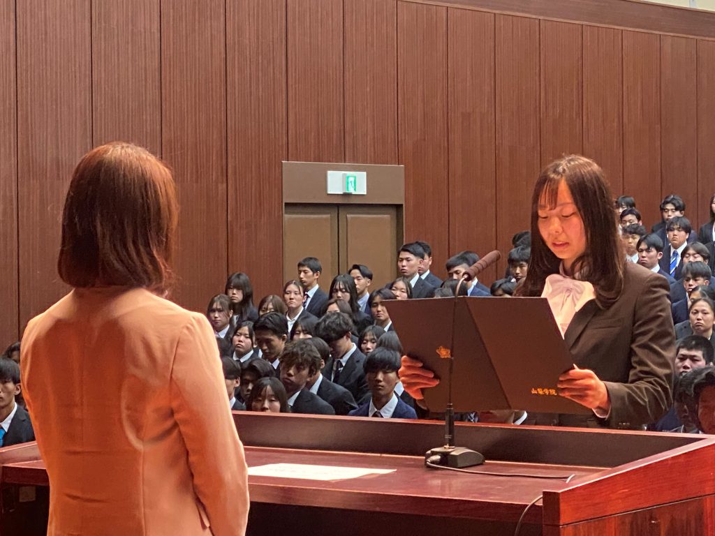 支えてくださるすべての方々への感謝を忘れず、山梨学院大学の名に恥じぬ行動をとり続けるとともに、新たな歴史を創り上げることをここにお誓い申し上げます。
